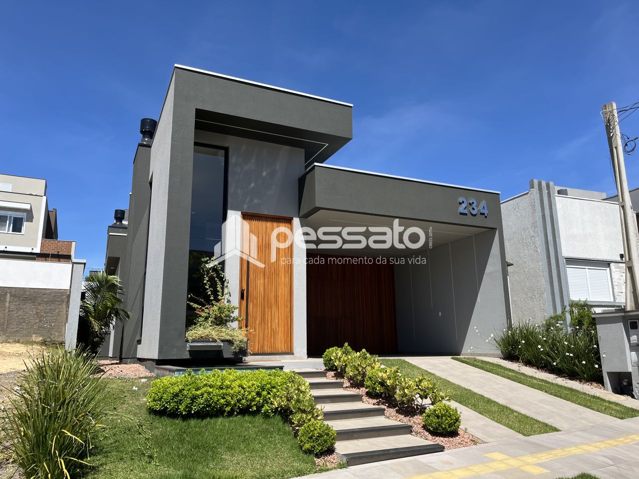 Entre os diferenciais estão o pé-direito duplo, teto rebaixado em gesso, sistema de água quente, aberturas em PVC automatizadas e infraestrutura pronta para receber placas solares, carregador de veículo elétrico e piscina/spa. Agende uma visita. Também estamos disponíveis via telefone e WhatsApp. Valores e disponibilidades sujeitos a alterações sem aviso prévio. Consulte nossos especialistas para mais informações.