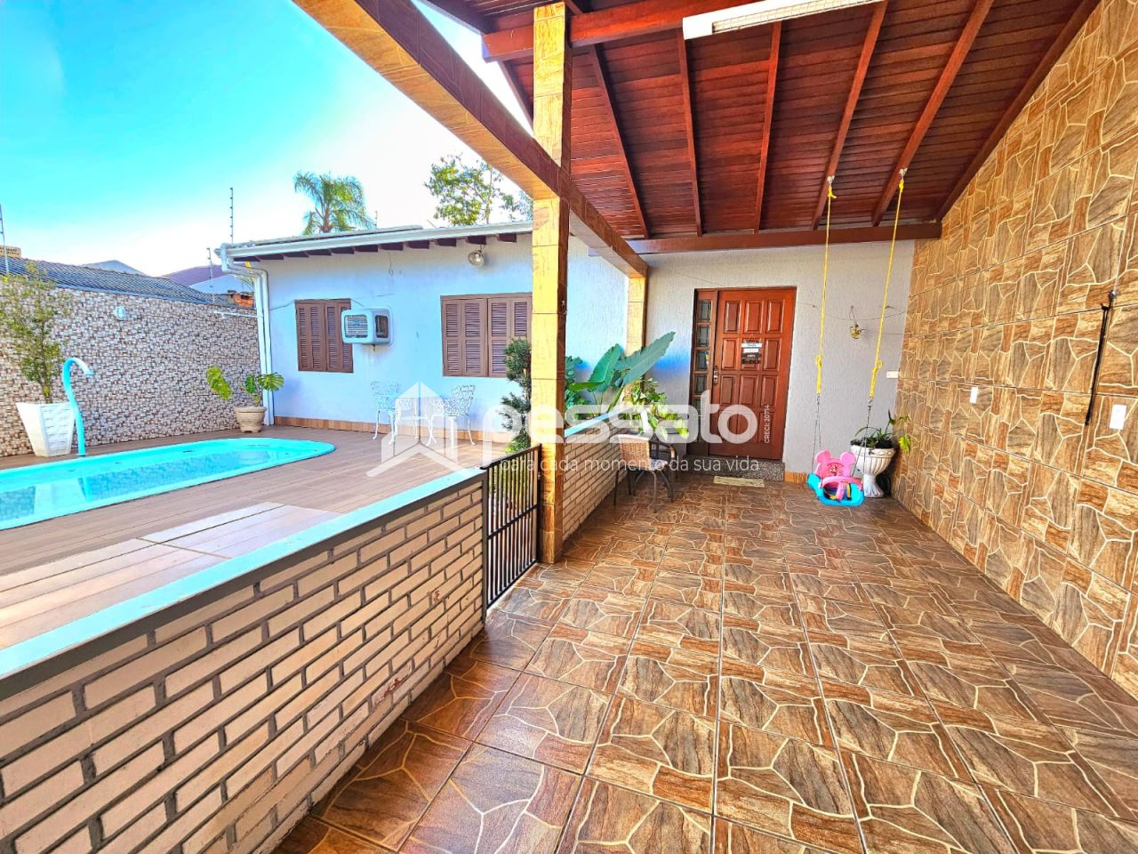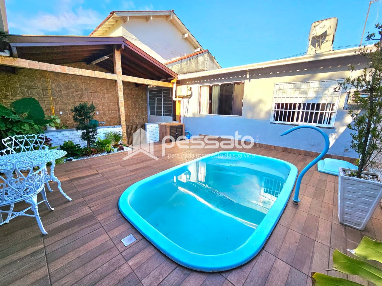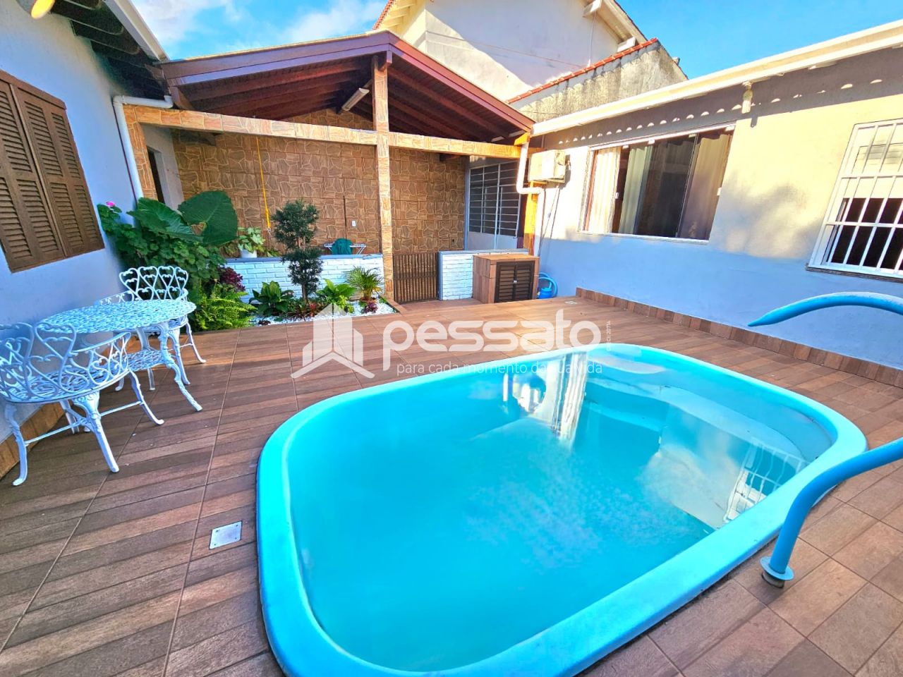 Este imóvel conta com 03 dormitórios, sendo 01 suíte, sala de estar, sala de jantar, cozinha, banheiros social, lavanderia, espaço amplo com deck e piscina, churrasqueira e garagem coberta para 03 carros.