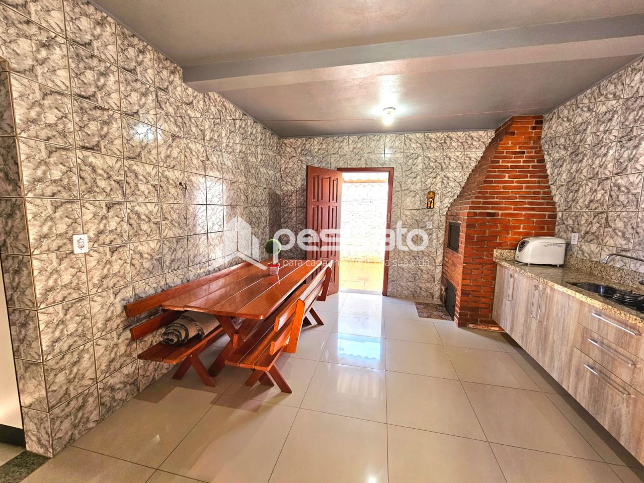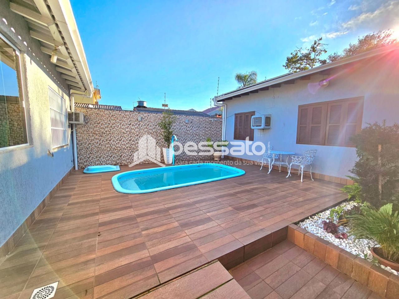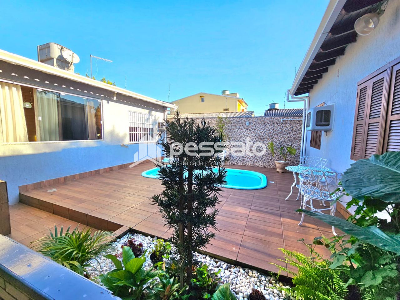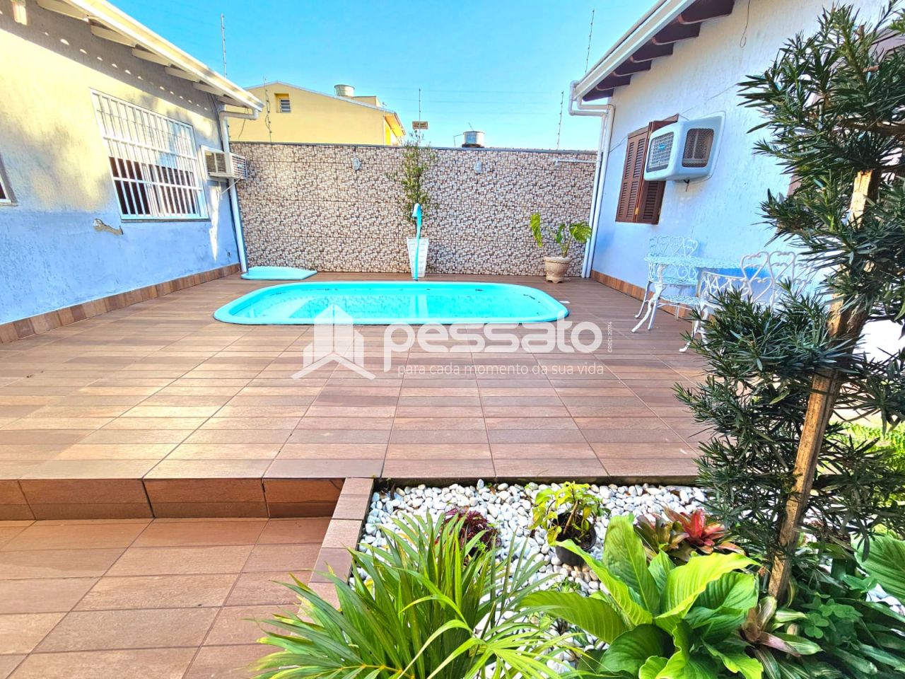 Este imóvel conta com 03 dormitórios, sendo 01 suíte, sala de estar, sala de jantar, cozinha, banheiros social, lavanderia, espaço amplo com deck e piscina, churrasqueira e garagem coberta para 03 carros.