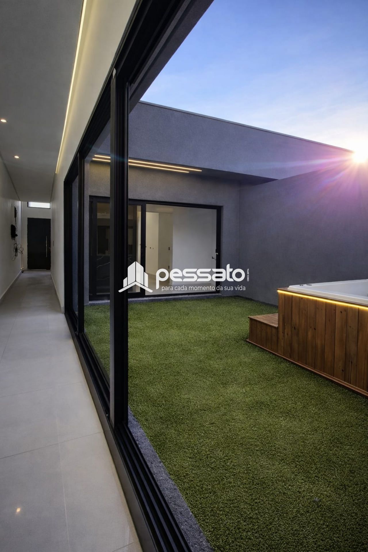 O imóvel conta com 03 dormitórios, sendo 01 suíte, sala de estar e jantar, área de serviços, cozinha, banheiro social, spa para 5 pessoas e vaga para 02 carros descoberta.